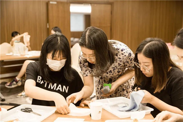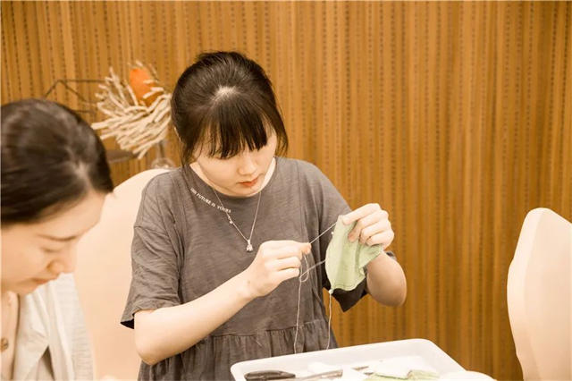 孕妈妈们个个摩拳擦掌、跃跃欲试。制作开始了,只见大家穿针、引线、缝合……一针一线在手边缓缓划过。无论手法生疏还是娴熟,大家都享受其中,现场气氛十分融洽。