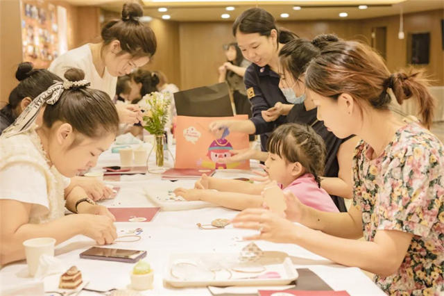 参与本次活动的小宝宝很多,我们特地为大家准备了彩泥diy,让宝宝把手和脚印在彩泥上,再饰以精美的珍珠、贝壳等,一份独一无二的彩泥就完成啦,难度虽然不大,却充满了纪念意义。随后的领带diy活动更是为了父亲节精心策划,亲手画一条彩色领带送爸爸,爸爸的父亲节仪式感满满。