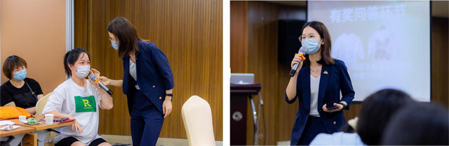在有奖问答环节中,妈妈们都踊跃举手抢答,轻轻松松就拿到了玛珂迩定制儿童防晒衣等奖品。