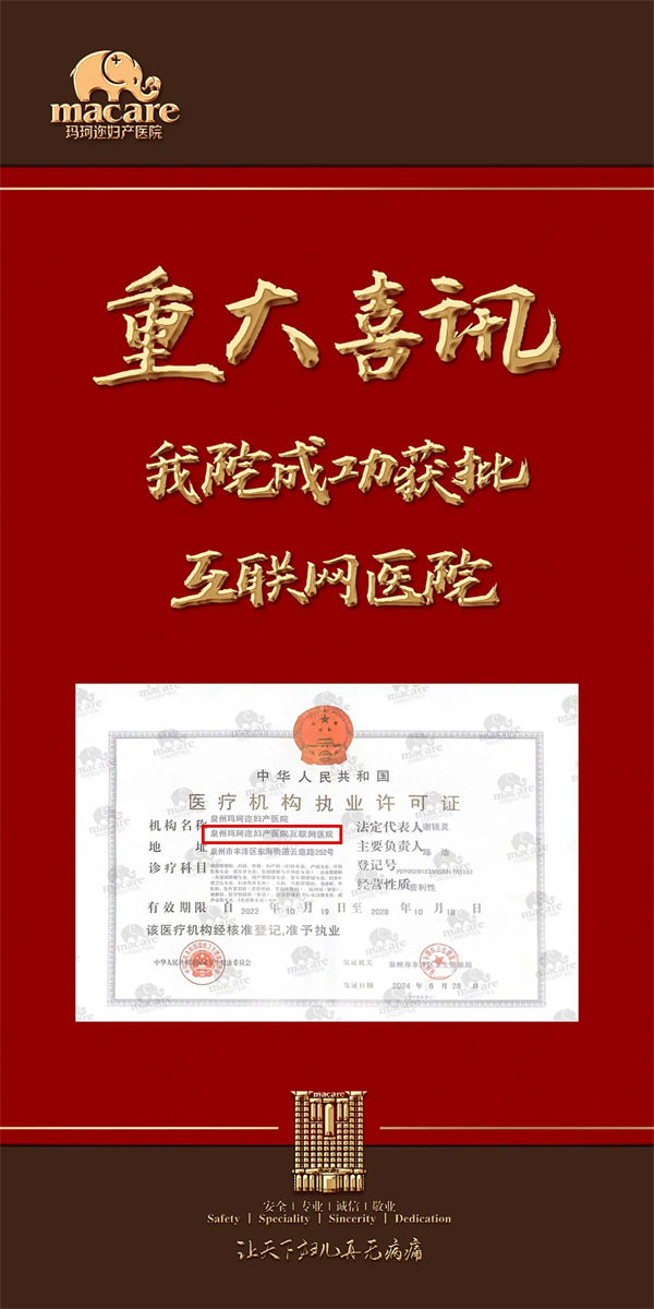 玛珂迩妇产医院成功获批互联网医院牌照,成为泉州首家民营互联网医院。